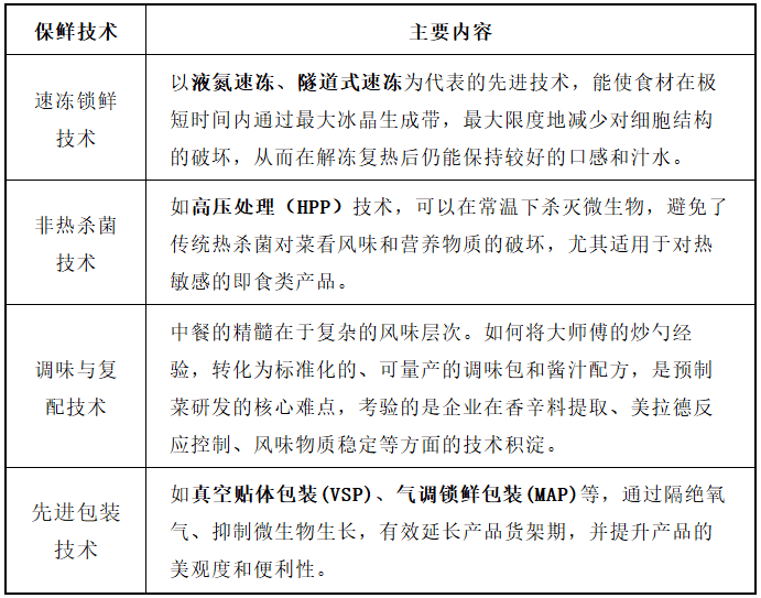 预制菜的魂灵正在于“口胃回复复兴度”,而其保障正在于“保鲜手艺”。若何通过现代食物科技,正在平安和货架期的前提下,最大限度地保留菜看的色、喷鼻、味、形,环节出产保鲜手艺包罗:速冻锁鲜手艺、非热杀菌手艺、调味取复配手艺、先辈包拆手艺。